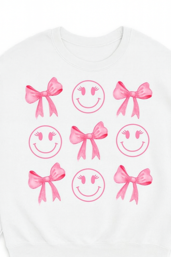 ADULT BELLA CANVAS Pink Smiley Bows TSHIRT